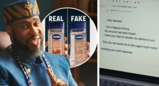 Vaseline's anti-scam campaign uses a genuine Nigerian prince to warn against dupes that are far from the real thing.