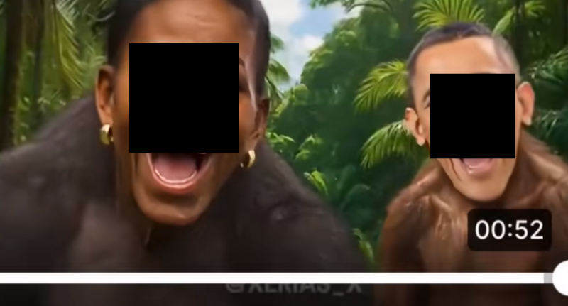 A 60-second clip first seems to be about vote counting in swing states, but then it cuts to the faces of the Obamas superimposed on apes dancing in the jungle to The Tokens’ 1961 song The Lion Sleeps Tonight.