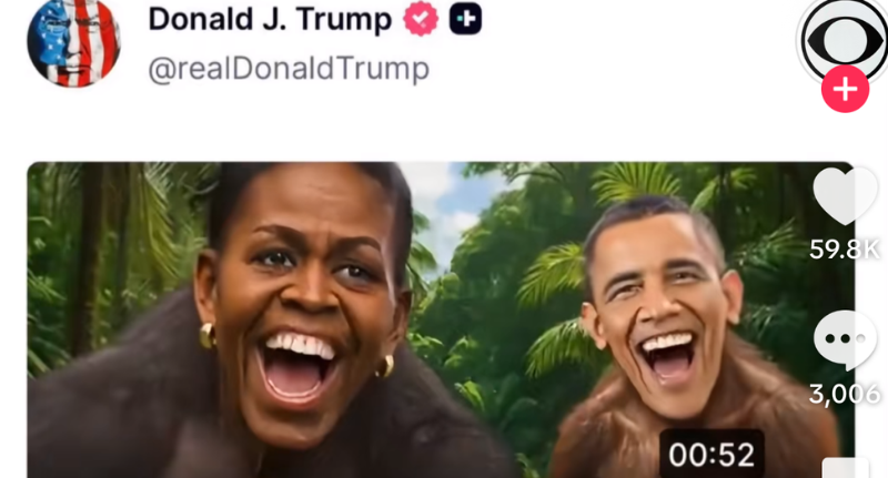 Over the weekend, Trump made more than 70 posts – including one depicting former president Barack Obama and former first lady Michelle Obama as apes.