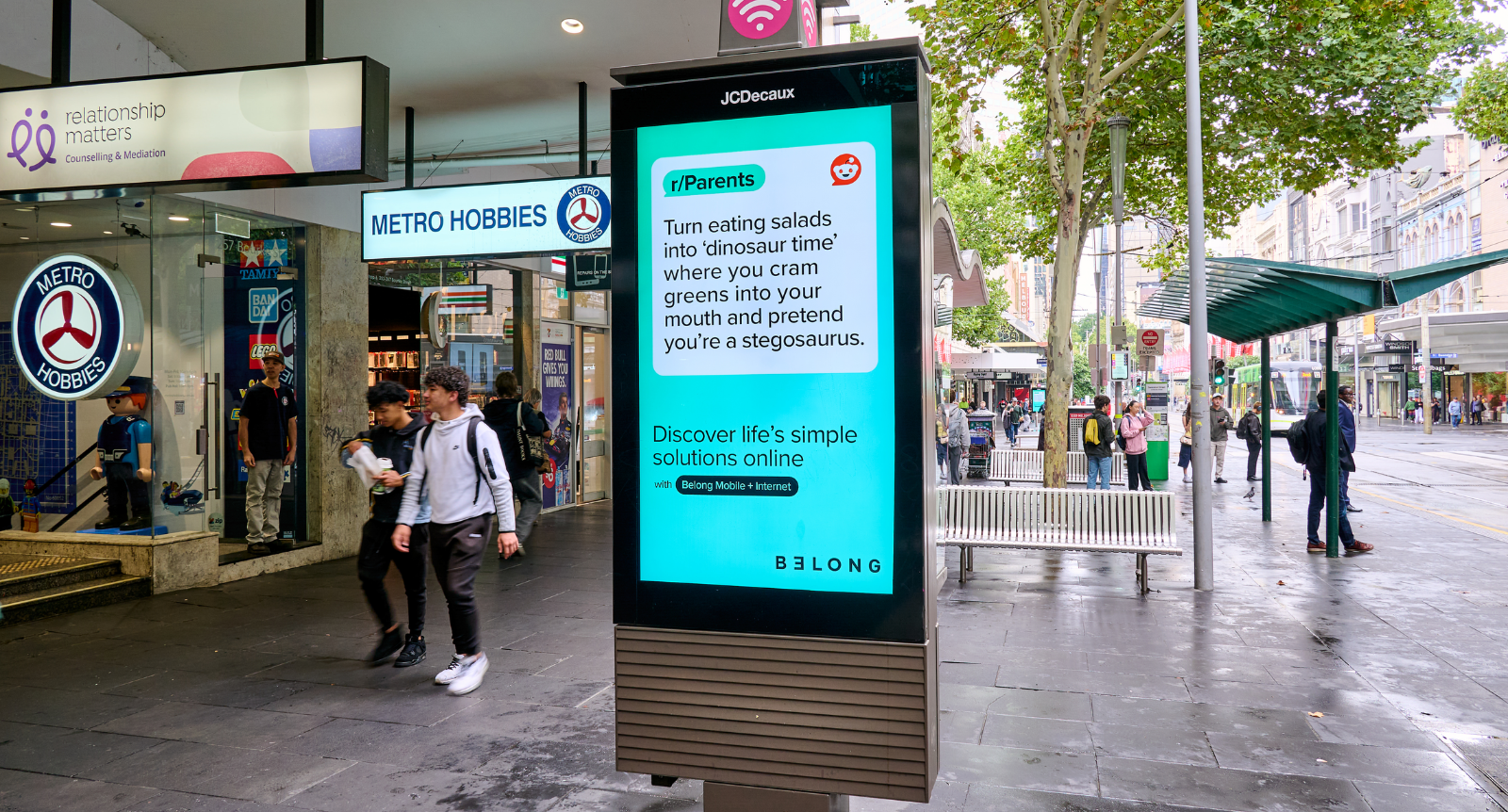 Out-of-home executions bring online conversations into the physical world, while a partnership with Nova Network — including The Chrissie Swan Show — amplifies the concept through live on-air engagement.