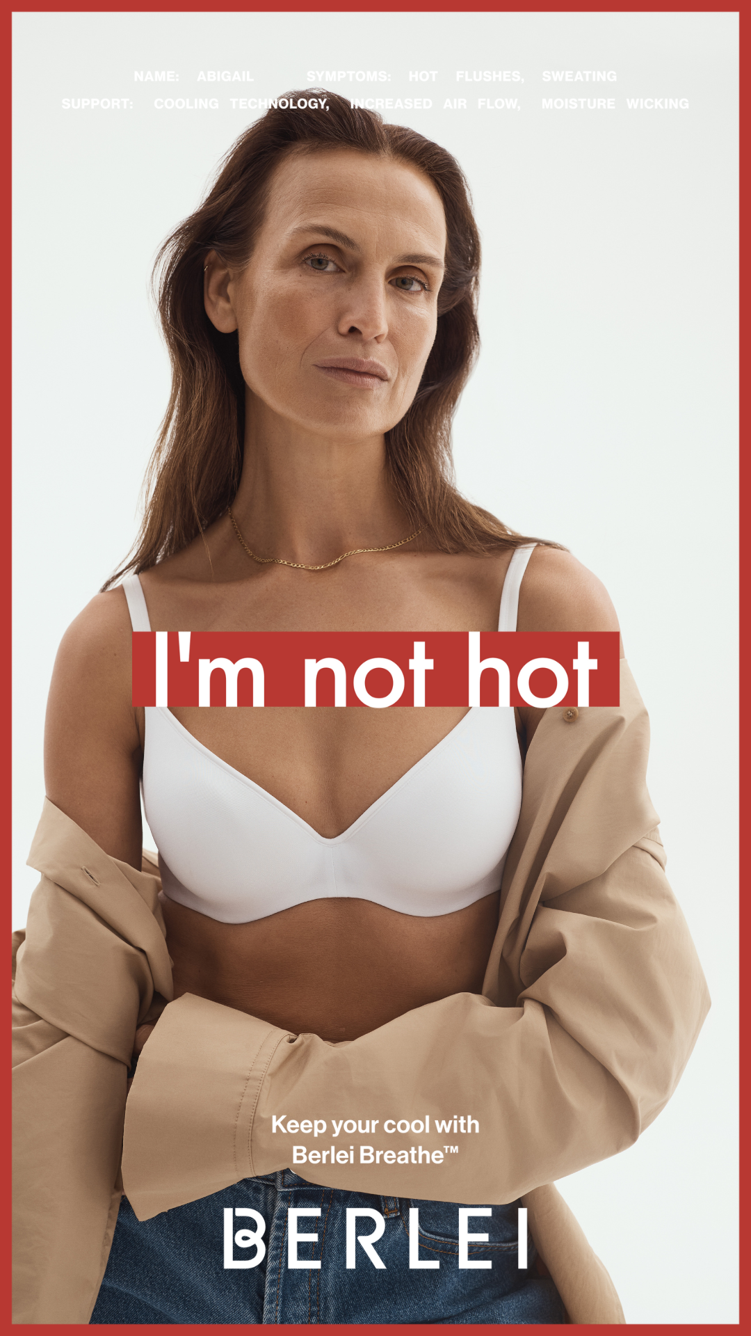 Rather than sidestepping the experience or dressing it up in euphemism, the campaign flips a loaded phrase and reframes it on Berlei’s terms. This isn’t “hot” in an aspirational sense. It’s “not hot” because she can feel cooler, calmer and more in control, and supported by a bra built for a body in transition.