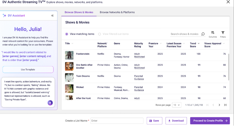 DV Authentic Streaming TV introduces a natural-language AI planning agent that allows buyers to describe brand goals and content preferences conversationally, translating them into actionable pre-bid controls.