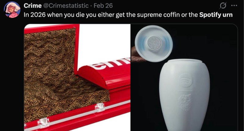 After all, if you’re going all out, you may as well go out and get a $AUD 3,995 Supreme-branded casket to pair it.