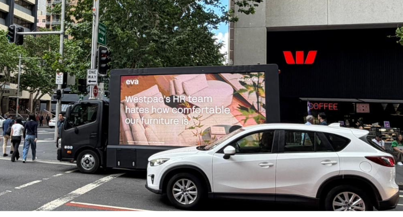 Australian furniture brand Eva has pulled off a bold billboard stunt, taking a jab at Westpac’s recent court headlines over remote work arrangements.