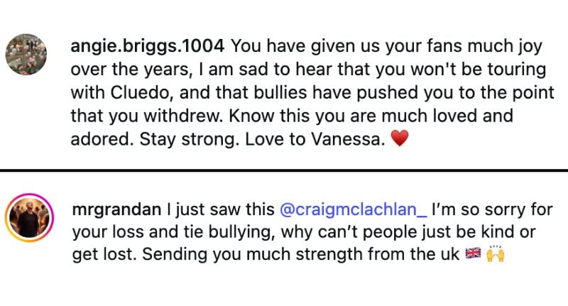 She said the reaction to McLachlan’s Instagram post following his recent withdrawal from the Cluedo stage show (more on that later) underscored that divide.