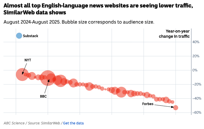 Contradicting these claims is research from SimilarWeb, which shared with Australia’s ABC data that showed global declines in news website traffic