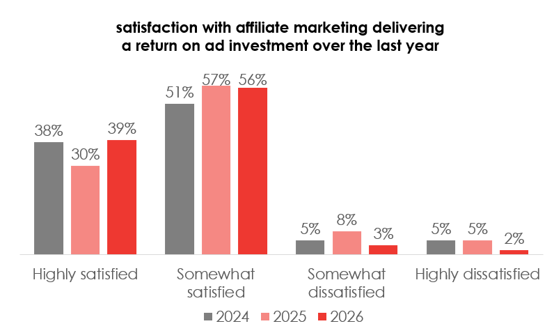 For advertisers, revenue and sales volume were the leading measures of success. The report also found 95 per cent satisfaction with affiliate marketing’s ability to deliver return on investment.
