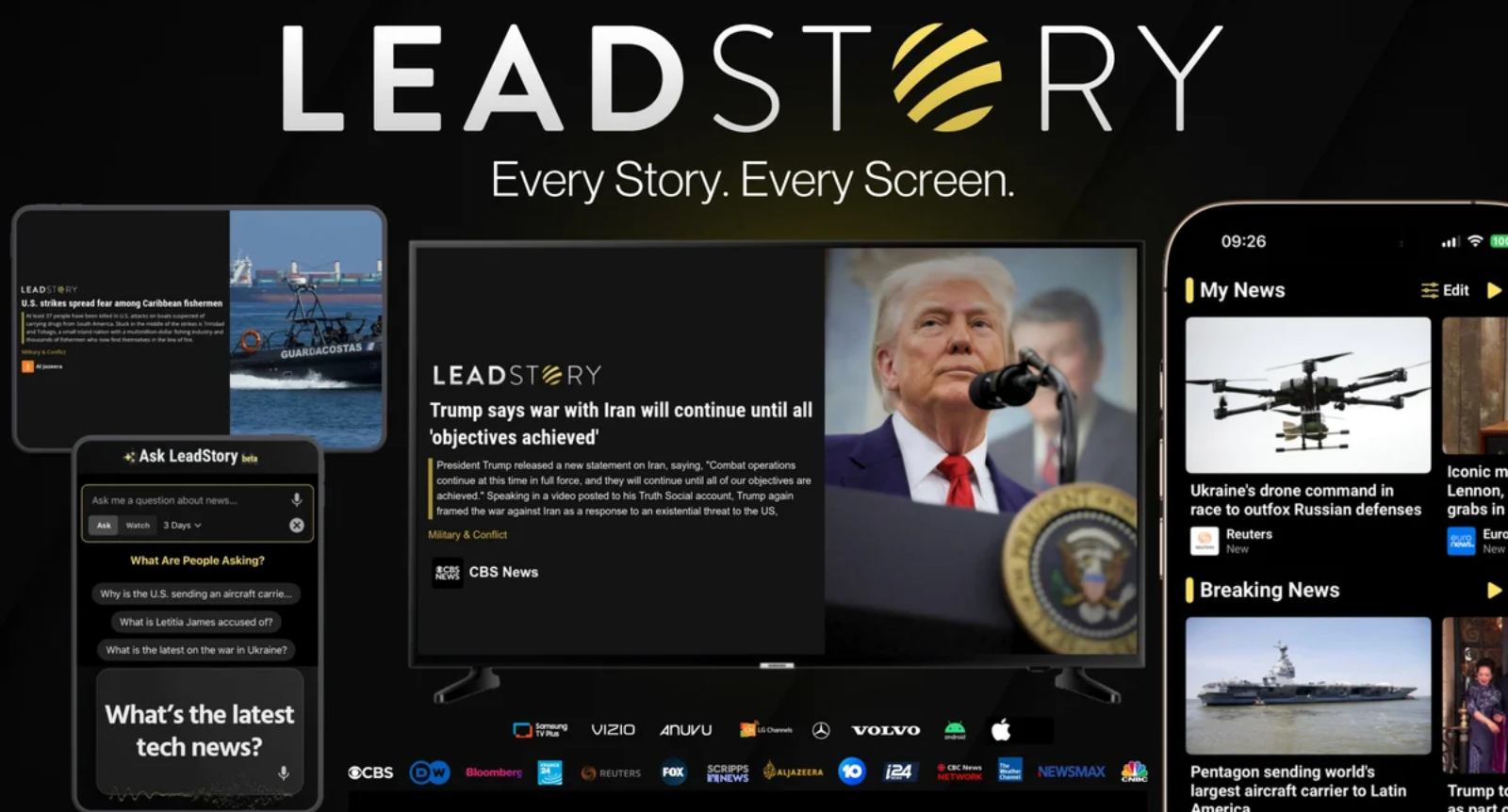 LeadStory delivers curated local and global news content across connected TV, mobile, digital and in-car environments, drawing on content from broadcasters including CBS, CNBC, Reuters, Bloomberg, Deutsche Welle, Al Jazeera, Network 10 and France 24.