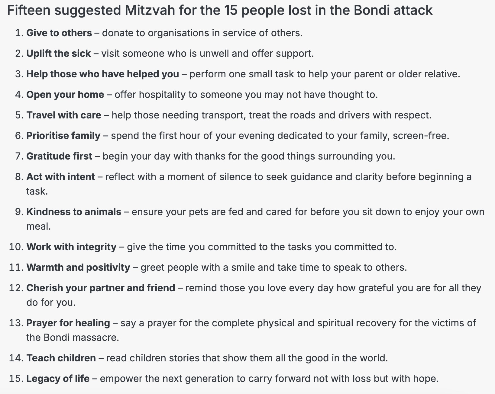 • A call for Australians to perform acts of kindness in solidarity with the Jewish community.