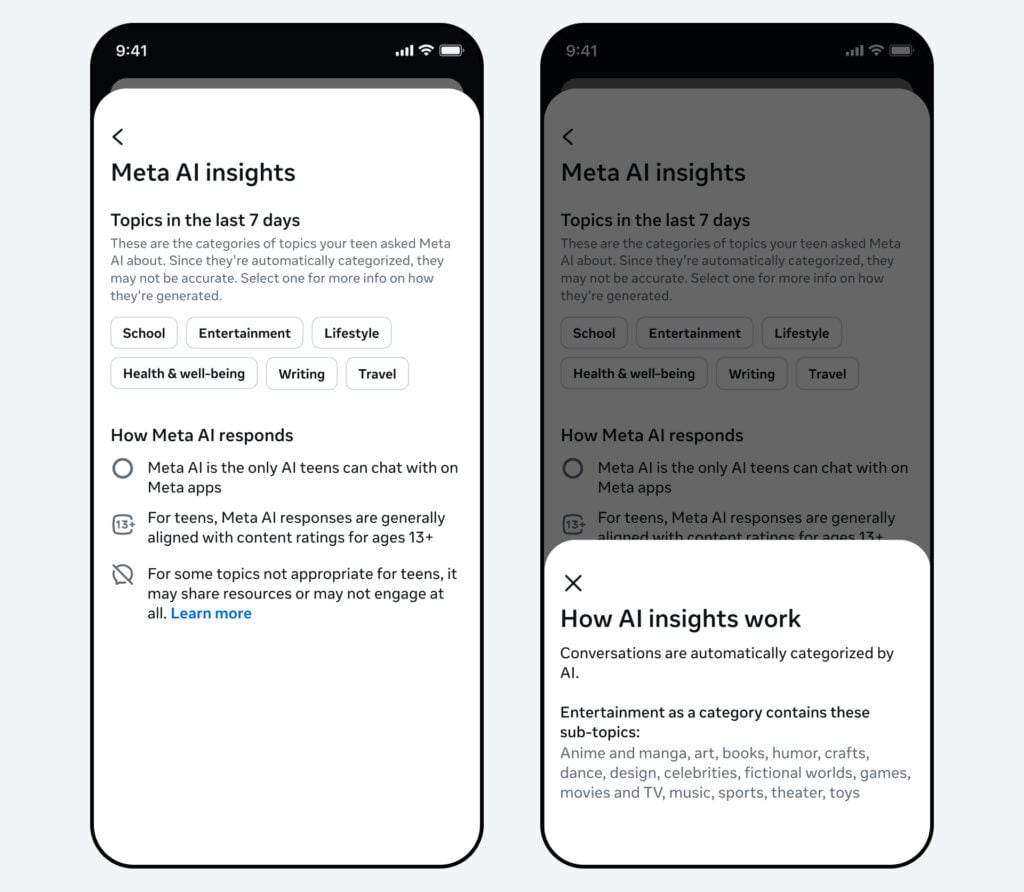 The new insights build on Meta’s existing AI protections for Teen Accounts. The company said its AI experiences for teens have been shaped by 13+ movie ratings criteria and parent feedback.