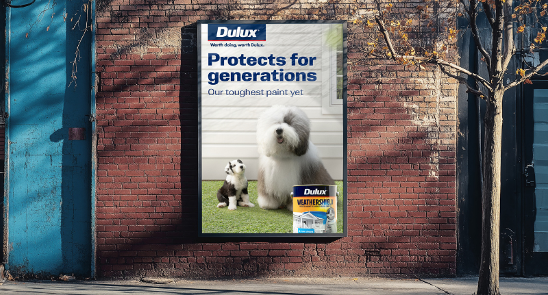 Richard Hansen, Marketing Director at Dulux, told Mediaweek, “This year also marks 50 years of our iconic Dulux dog in Australia. The Dulux puppy represents the next generation, alongside our new reformulated Weathershield.”