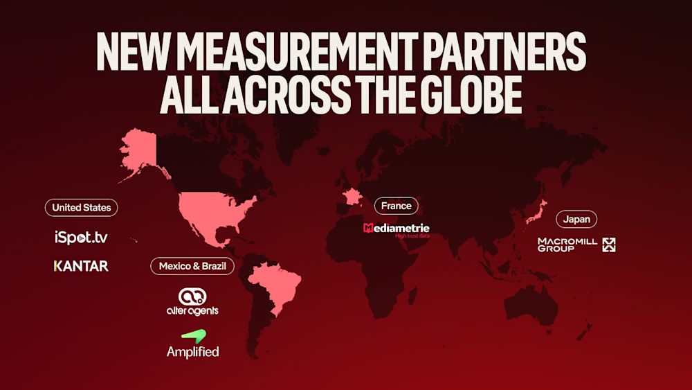 Measurement partnerships continue to widen: Médiamétrie in France, Macromill in Japan, Amplified Intelligence and Alter Agents in Latin America, and expanded Brand Lift via Kantar and iSpot in the US, plus AudienceProject across EMEA.