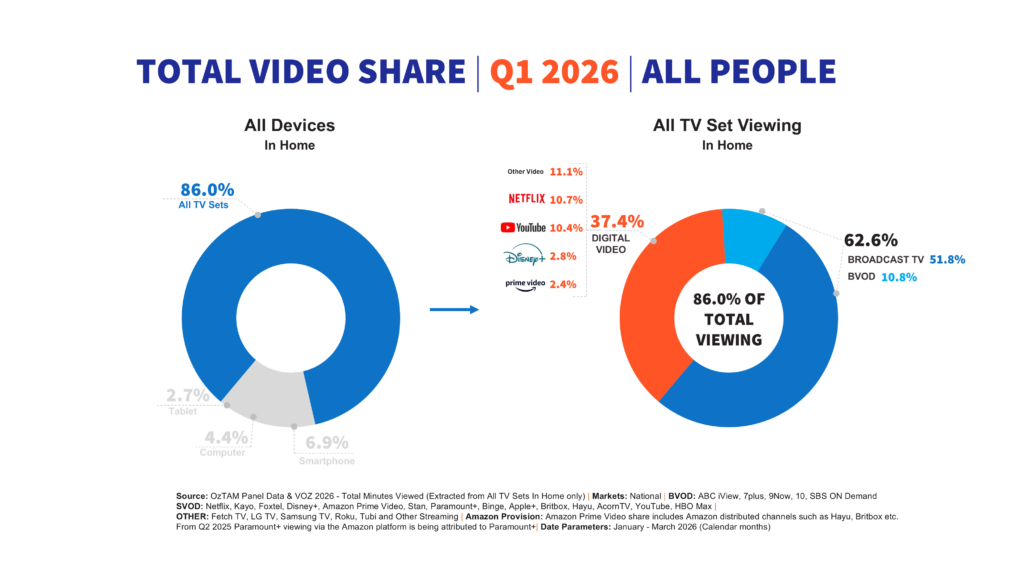 The Q1 2026 Streamscape report was released alongside a new interactive dashboard, giving subscribers a self-serve view of Australia’s Total Video landscape across broadcast television, BVOD and streaming platforms.