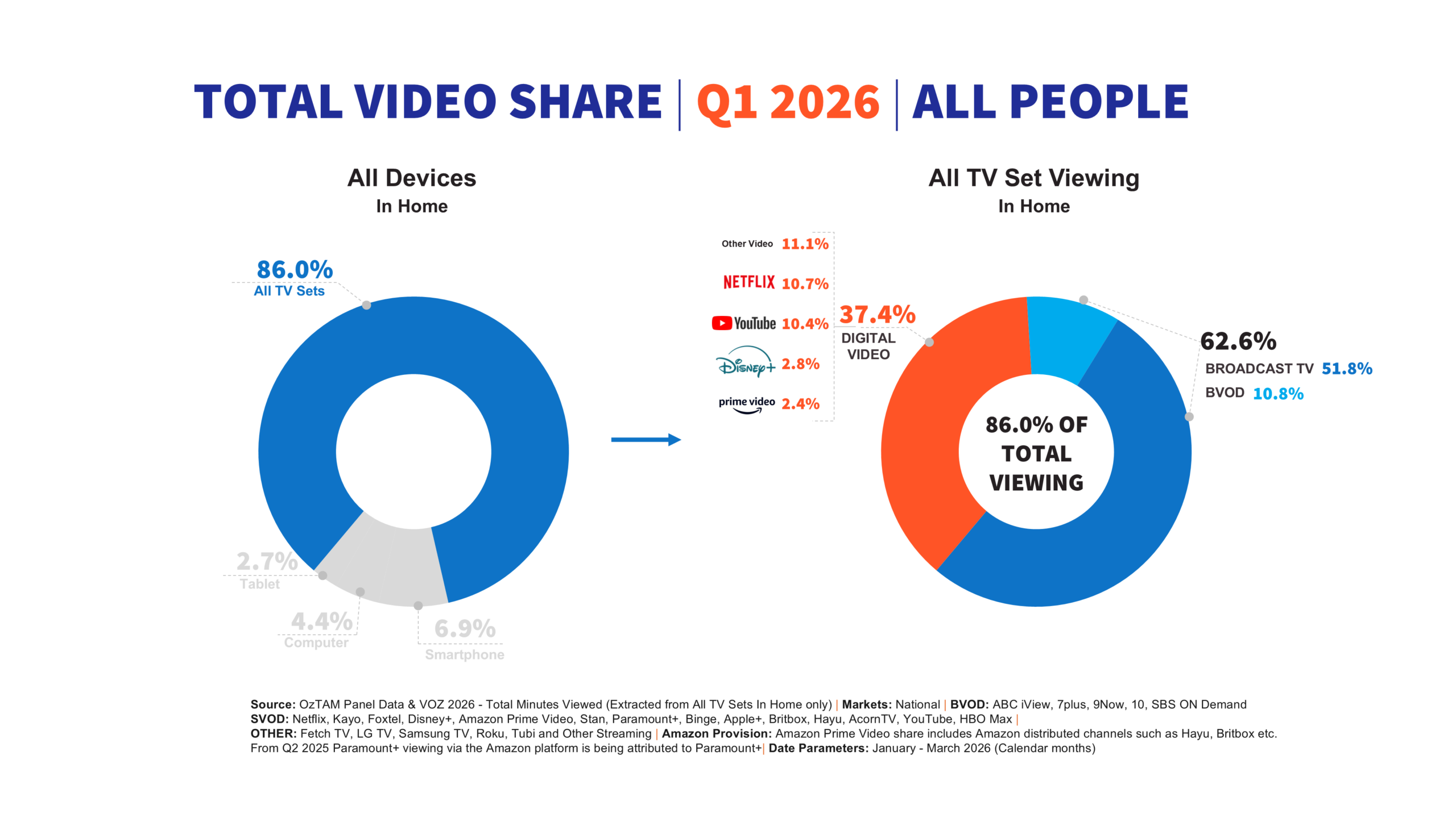 However, the growth came from digital viewing. BVOD increased to 10.8 per cent in Q1 2026, up from 9.8 per cent in Q4 2025.