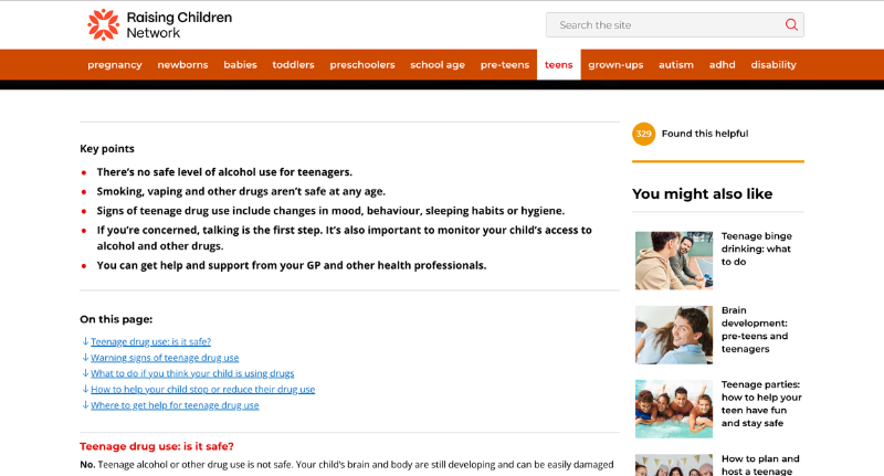 The Raising Children Network is an excellent resource for teens and alcohol. Image: RCN